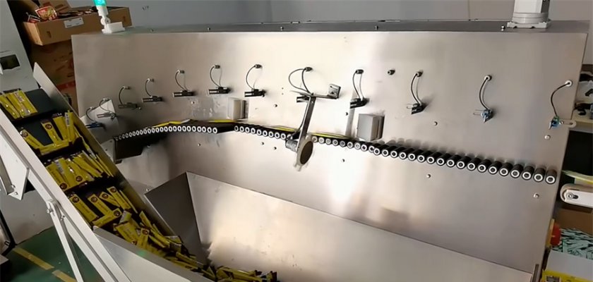 無序理料機(jī)也叫自動(dòng)理袋機(jī),可在生產(chǎn)中單獨(dú)使用,也可以與裝盒機(jī)對(duì)接,完成無規(guī)則的堆積物料從集中到分散再到順序擺放的整個(gè)整理過程。它是將無規(guī)則堆積物料倒入儲(chǔ)料倉后,料倉輸送帶動(dòng)作,將物料輸送至低速滾輪上。無序理料機(jī)通過低、中、高速滾輪的運(yùn)轉(zhuǎn),將物料逐一順序送出理袋機(jī)。 送出的物料根據(jù)包裝需要的形式或順序或堆疊進(jìn)入裝盒機(jī)輸送當(dāng)中完成下一工序的裝盒過程。